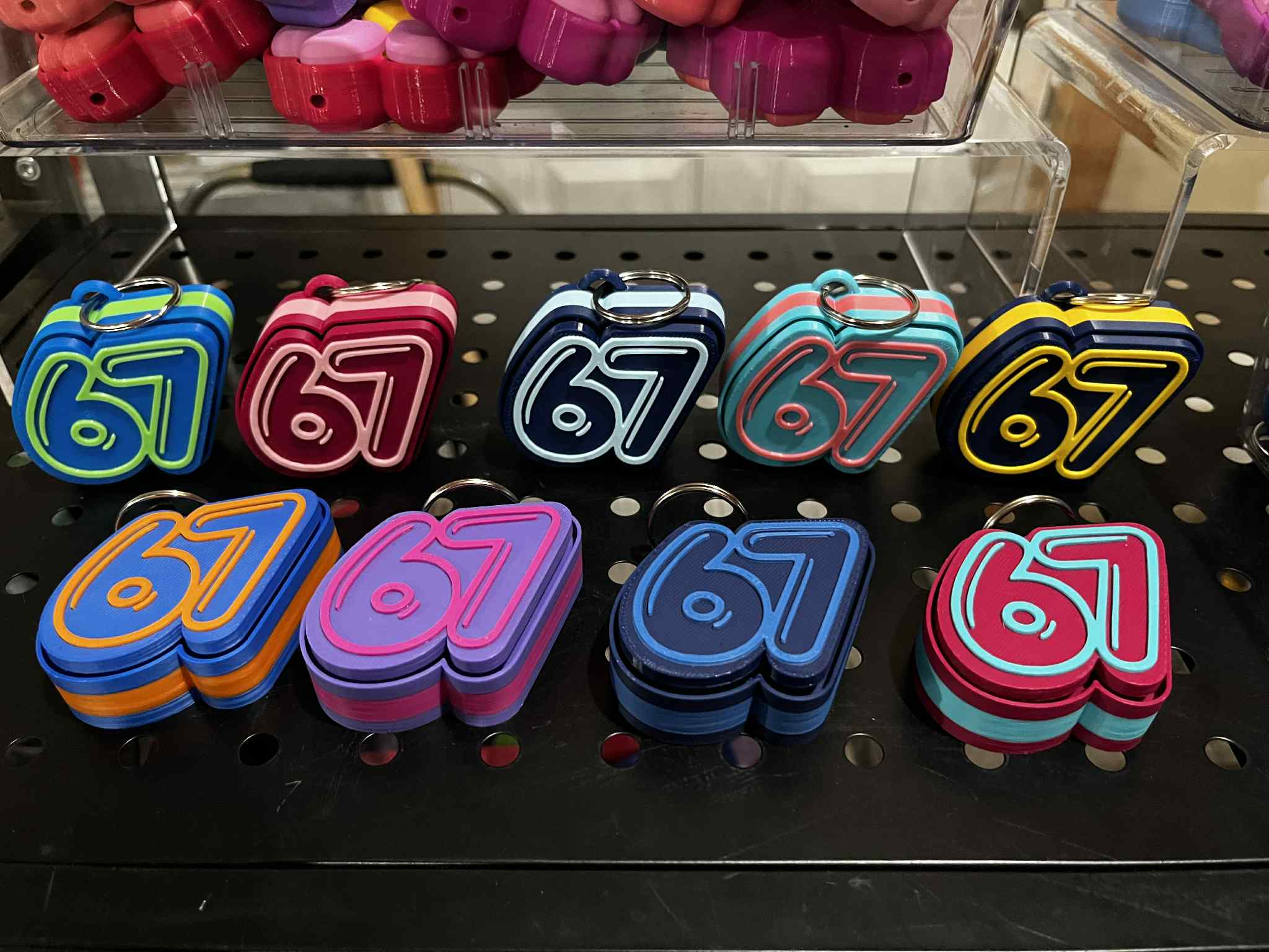 As parents of 3 pre-teens, we never stop hearing “six… seven!” at our house. 😅 Gen Alpha has turned 67 into the viral chant - Dictionary.com even named it the Word of the Year for 2025. It’s part inside joke, part social signal, and100% energy. So we embraced the craze and made a chunky, color-layered “67” clicker keychain that’s equal parts spirit swag and irresistible fidget. Calling it now: the hot stocking stuffer of the season.